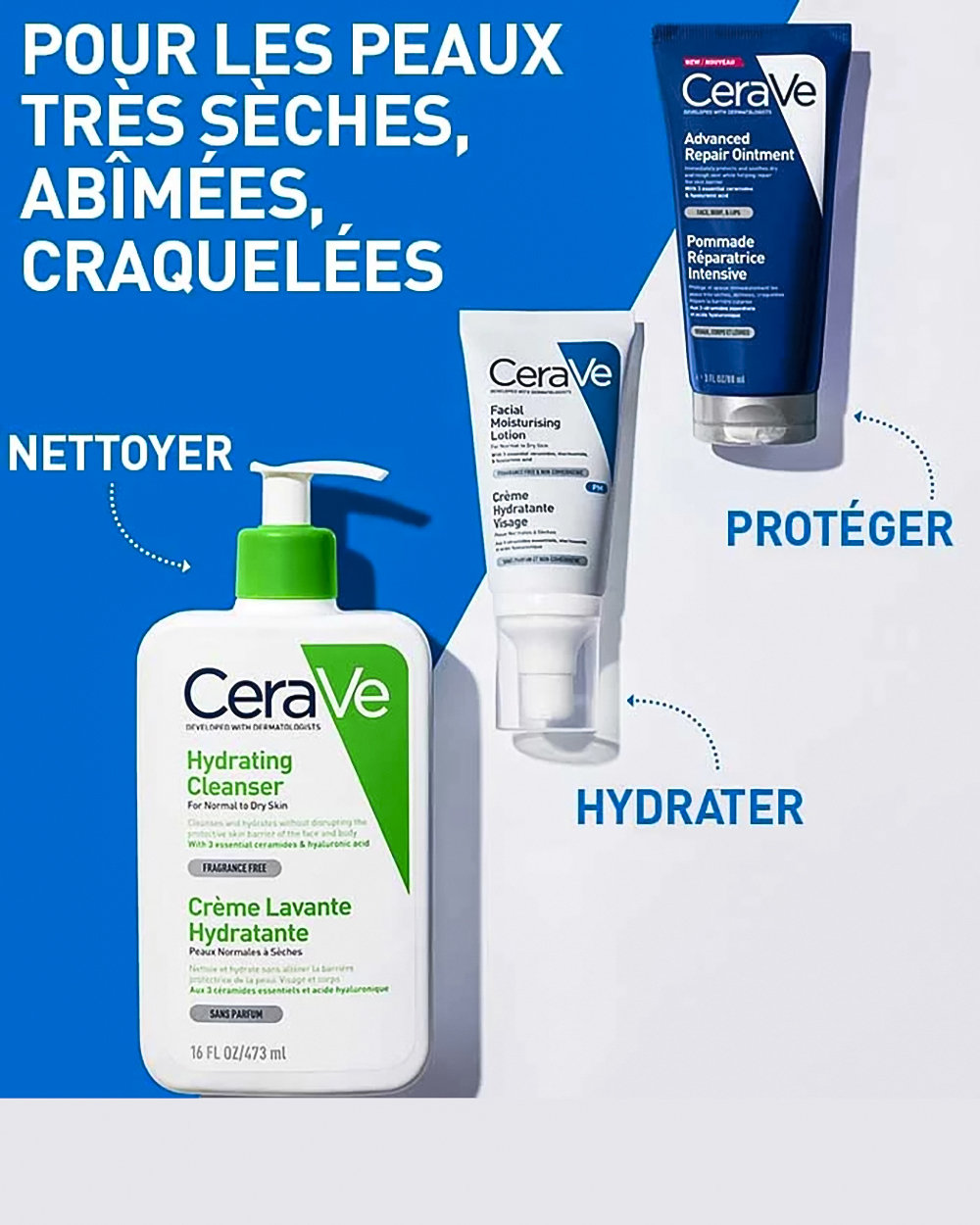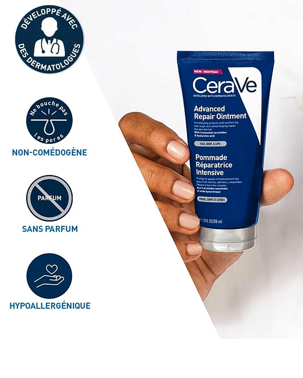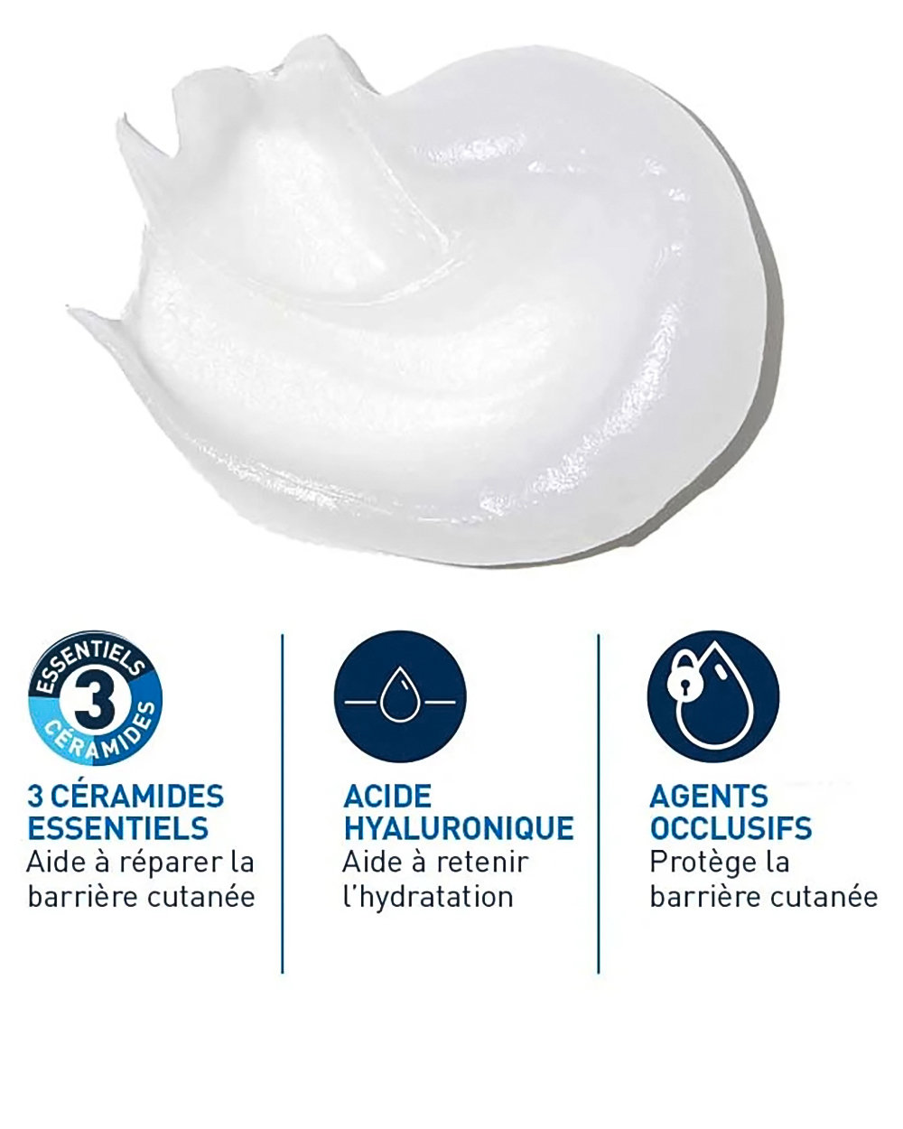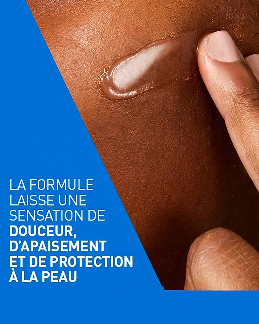 Обогащенная 3 незаменимыми керамидами, естественным образом присутствующими в коже, и гиалуроновой кислотой, эта процедура восстанавливает кожный барьер. Его полуокклюзионная мазевая текстура образует защитный барьер, похожий на «эффект пластыря», для защиты поврежденной кожи, позволяя коже «дышать». Наконец, пантенол помогает немедленно избавиться от дискомфортных ощущений.