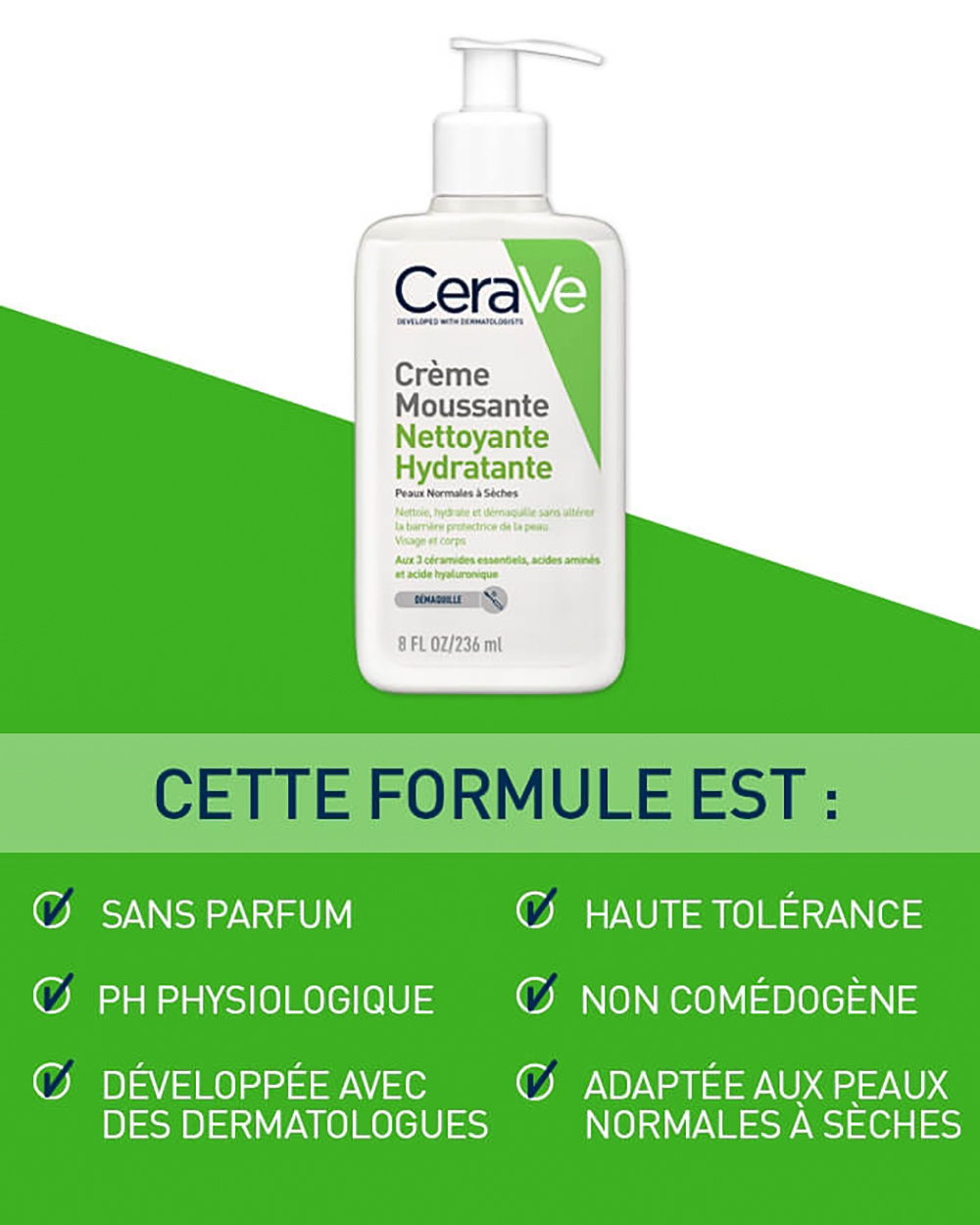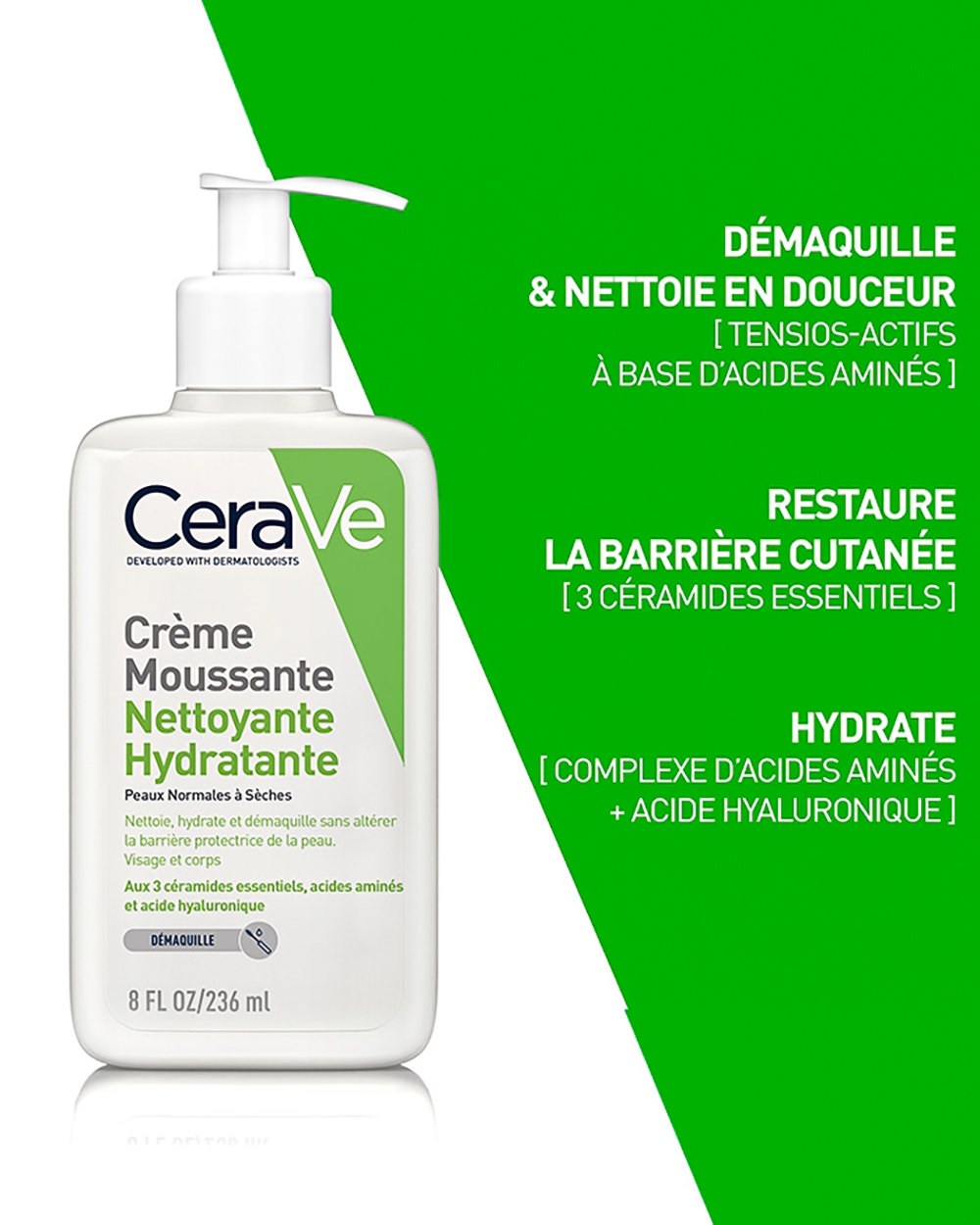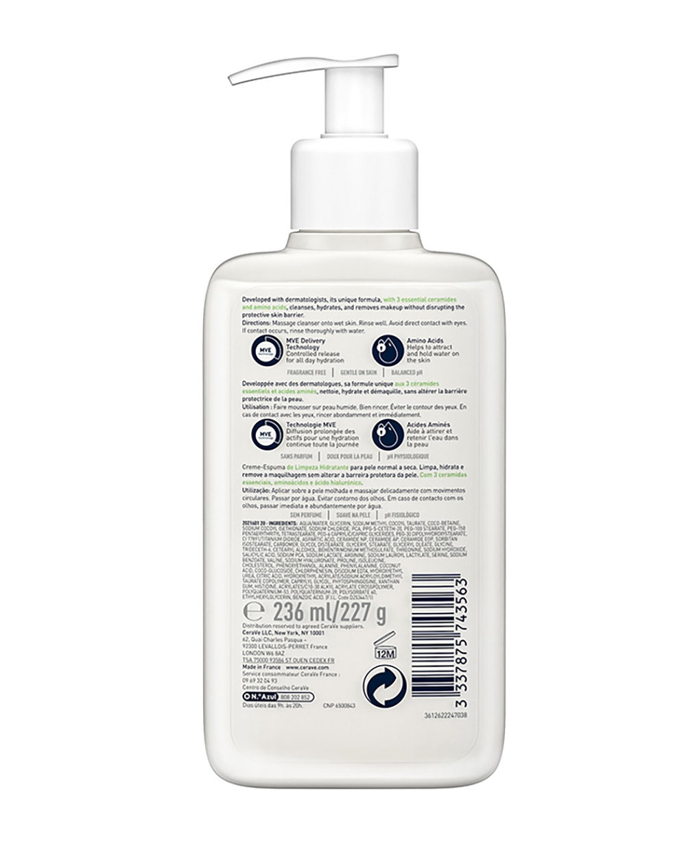Увлажняющий очищающий пенообразующий крем от CeraVe — это средство, которое очищает и снимает макияж с нормальной и сухой кожи. Созданный на основе мягких поверхностно-активных веществ на основе аминокислот, он мягко очищает кожу, не нарушая кожного барьера. Его формула удаляет загрязнения и даже стойкий макияж. Это очищающее средство с кремовой текстурой превращается в нежную пену при нанесении на влажную кожу. Он освежает и оставляет кожу мягкой и увлажненной без ощущения дискомфорта или стянутости.