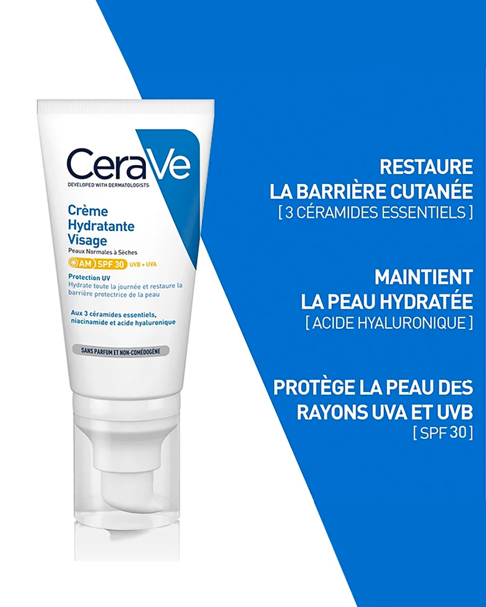 CeraVe AM Facial Moisturizer с широким спектром SPF 30 — это универсальное средство для утреннего ухода за кожей, которое обеспечивает непрерывное увлажнение в течение дня, помогая впитывать и отражать вредные UVA и UVB лучи солнца и восстанавливать защитный барьер кожи.