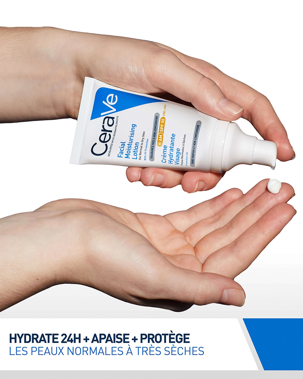 Увлажняющий крем для лица CeraVe SPF50 — это средство, которое увлажняет нормальную и сухую кожу. Этот крем с легкой текстурой, не липкий, наносится на лицо и шею для увлажнения кожи в течение всего дня. Его защита от ультрафиолета SPF50 блокирует лучи UVA и UVB, защищая кожу от солнца.