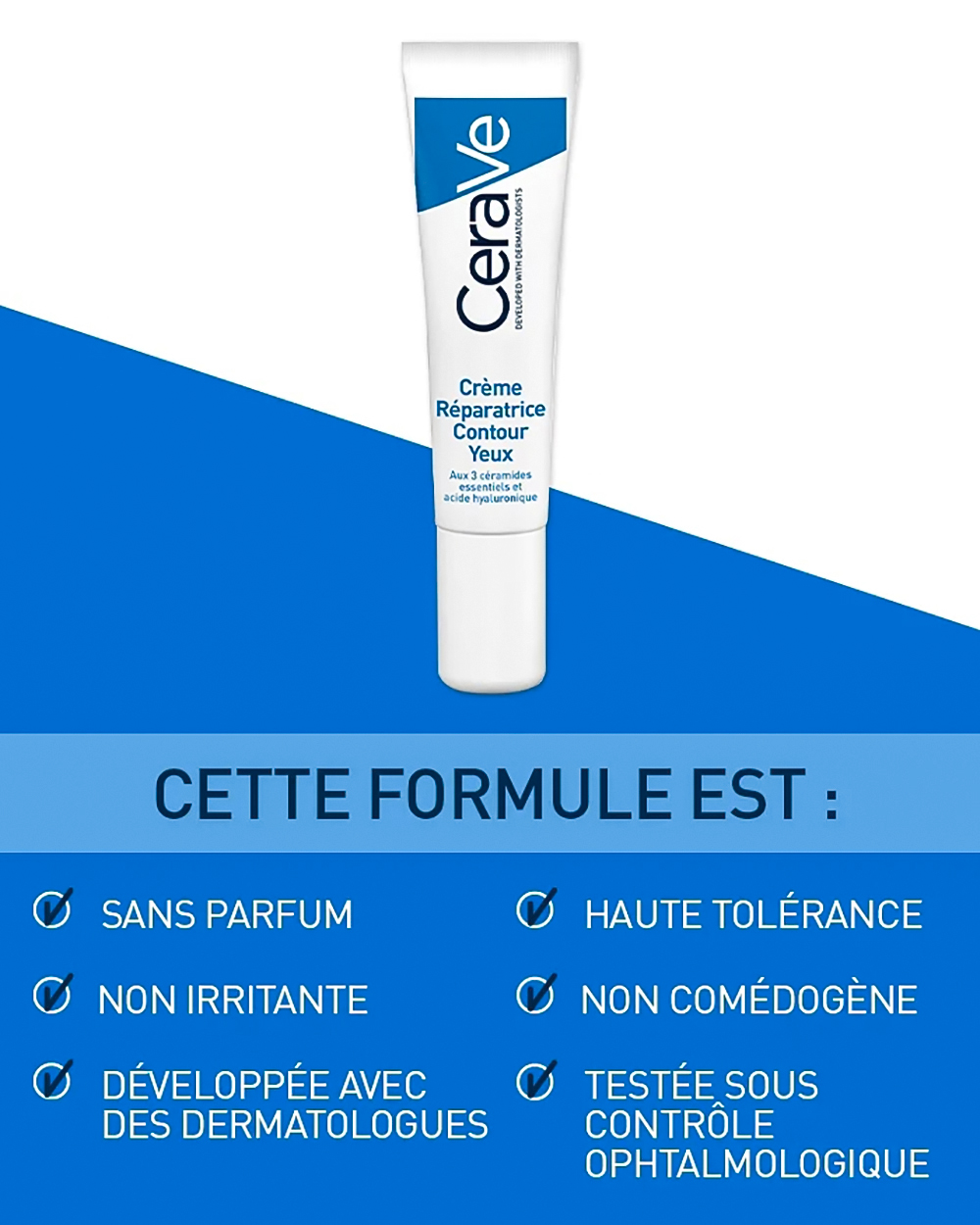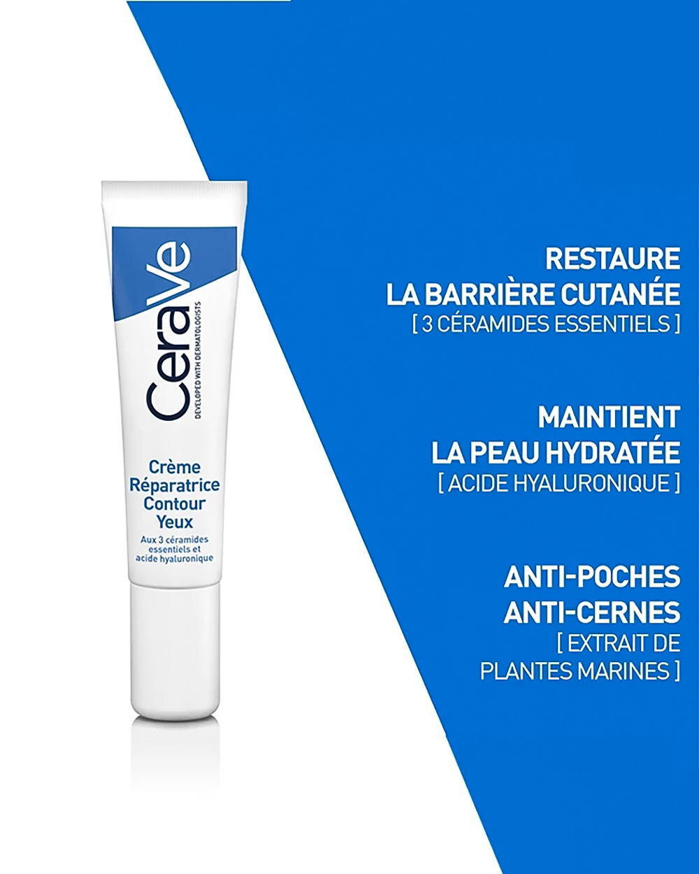 CeraVe®, Восстанавливающий крем для контура вокруг глаз с ультра-легкой формулой деликатно увлажняет область вокруг глаз, снижая видимость мешков и темных кругов под глазами. Предотвращает появление преждевременных признаков старения.