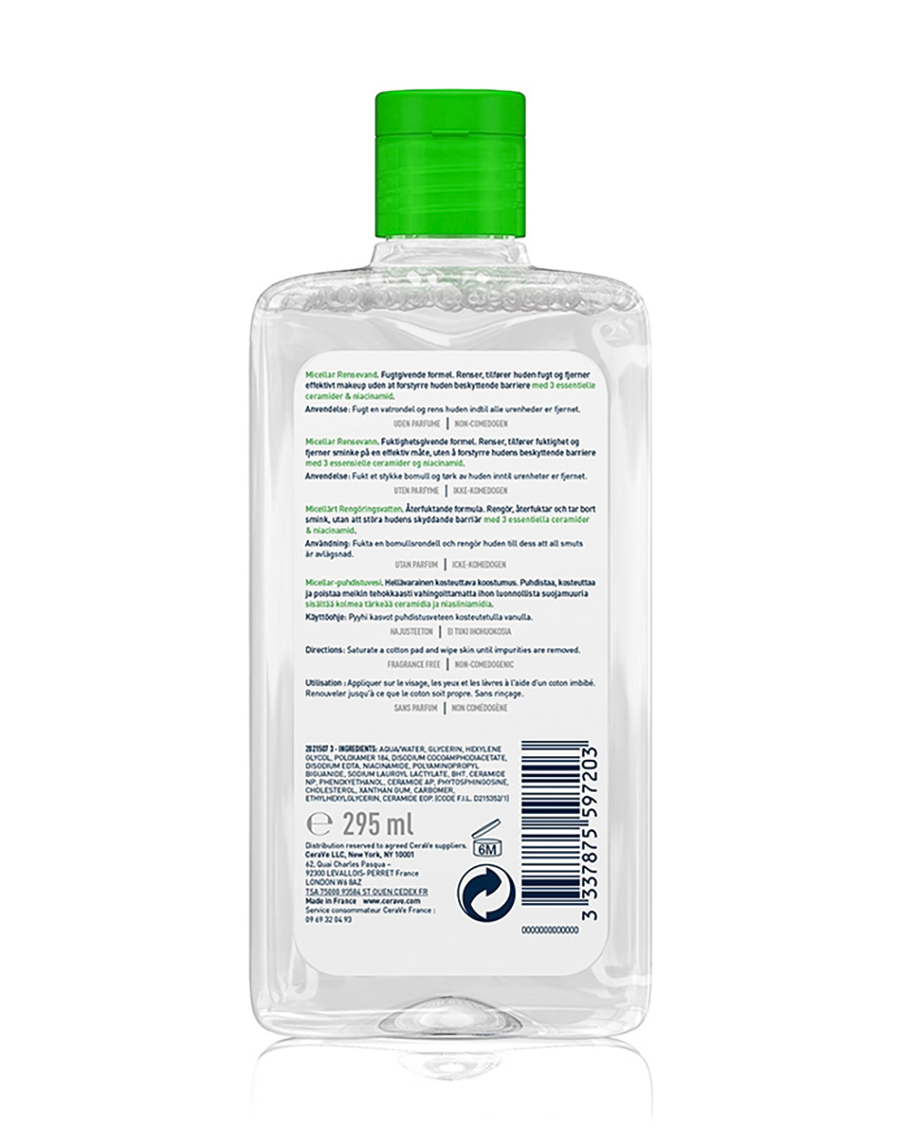 Мицеллярная вода CeraVe — это продукт 3-в-1, который очищает, снимает макияж и увлажняет нормальную и сухую кожу, не нарушая кожного барьера. Оно мягко очищает кожу и удаляет загрязнения, загрязнения и макияж с лица, глаз и шеи.